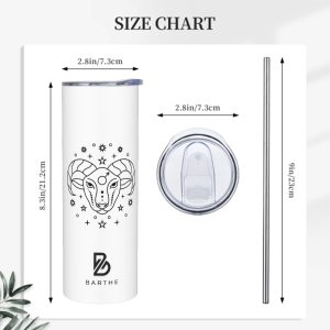 Ignite your passion with our Aries Zodiac Sign 20 oz Stainless Steel Straight Tumbler, beautifully adorned with a dynamic Aries constellation design. Perfect for those who embody the bold and adventurous spirit of this fire sign, this tumbler seamlessly merges style and practicality. With double-wall vacuum insulation, your beverages will stay hot or cold for hours, making it the perfect companion for any journey.